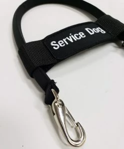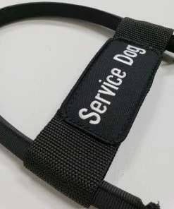 The Nylon Clip-on Bridge Handle w/Identification Band is a light weight bridge handle. It comes with a removable identification band. This bridge handle is 12” tall. Bridge handles are the taller handles that are used on and attached to the service dog vest to extend the reach of a handle for the handlers comfort and control. The bridge handles are a great addition to any service dog vest as they help the handler to stand without bending over the dog. The Nylon Clip-on Bridge handle w/Identification Band will work with any of our vests that have D-rings for handles. This bridge handle is black with black nylon snaps and the ID band is a black band that has stand out white embroidery letters that state, “Service Dog”. Made in USA