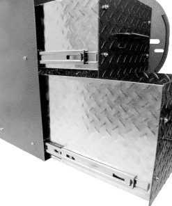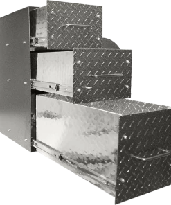 Each drawer is mounted on 2 heavy duty ball-bearing slides that move very smoothly and will not bind. All 3 drawers have a catch so they will stay shut, even if vehicle is parked on a hill or during hard acceleration.