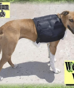 The Dog Weight Vest is made from heavy ballistic material. It is padded, and all seams are double stitched. The back section and the girth and chest straps are sheepskin lined for added comfort. Each pocket holds a one pound weight.