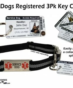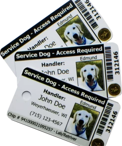 Our 3 Part Key Tag Identification Card provides all the information clearly for your Service Dog on one easy to read, high quality, ID card. When you purchase this card you will also receive a FREE entry to our online registry database which can be validated from any smart phone, tablet, or computer.