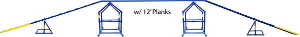 Bases and ramps are stand-alone products that are designed for the weight of a 12’ plank board and two 12’ plank board side ramps. Additional center support (350783) can be purchased separately. A center support will help with plank bounce. The assembled base is 46.5” tall so when adding the plank board with a depth of 1.5” your walk will be competition height of 48”.