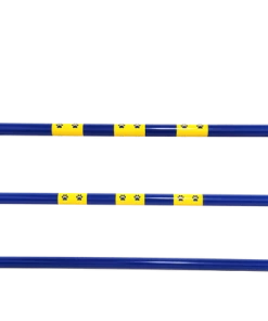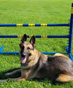 The Activedogs.com Fixed Base Jump is part of the “Premium Series” line of agility equipment. It measures 36” tall and meets standards for AKC, USDAA and TDAA trials. The Fixed Base Jump frame poles are 1.25” O.D. This jump comes with a fixed center bottom pole. The Fixed Base jump frame is blue with yellow vinyl wraps on the upright poles and on the jump bars. There is no tape on the jump and comes already wrapped for you. This jump comes with two jump bars. The 48” displaceable jump bars can be set from 4” to 26” in height.