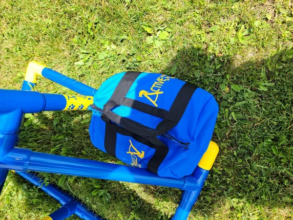 The base of the bag is covered in PVC Resin No-Slip materials. The No-Slip material bottom will help the sand bag not shift during use. The base is approximately 10” x 12”. This is a wide low-profile base and keeps the bags weight down on the ground. With this duffle style design the bag is not tippy and stays in place.