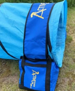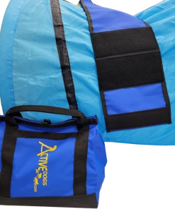 The sand bag top opens with Velcro openings and finger tabs for easy access. The bag top handles are low profile so there will be no floppy handle straps for handler or dog to get tangled in. The handles Velcro together making carrying the bags secure. They are doubled stitched and boxtacked.