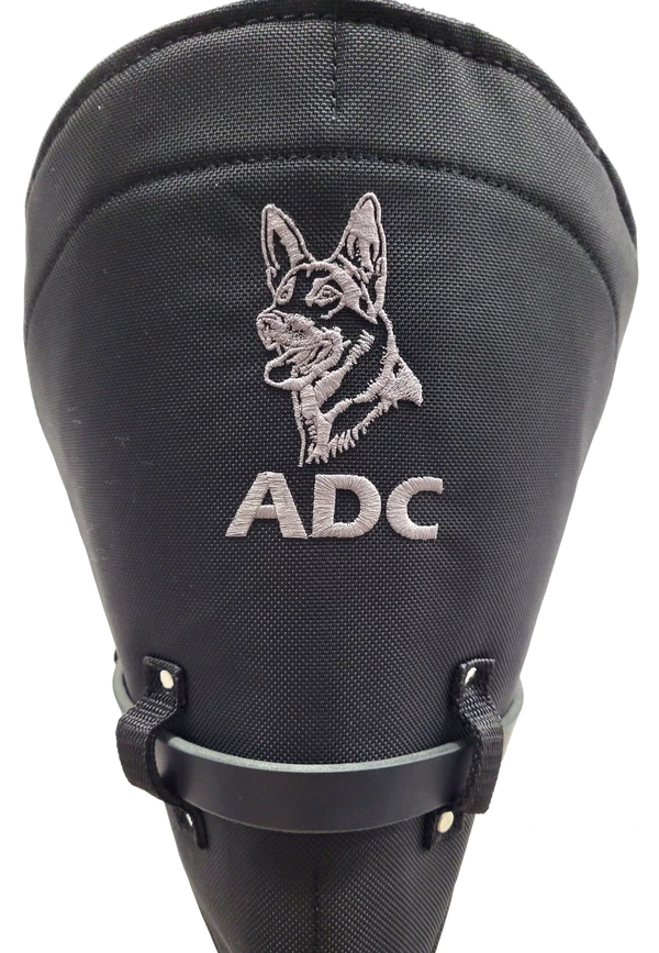 The Activedogs.com Ambidextrous Bite Sleeve with a formed bite bar is a very versatile bite sleeve as it can be worn on the right or left arm. This sleeve is light weight which is a nice feature if you are working those heavy dogs or many dogs in a day. The ballistic bite sleeve is a pound lighter than our leather Ambidextrous sleeve. The exterior construction is made from high density ballistic material, similar to what is used in luggage. So, it is extremely durable and water resistant. Stress points are reinforced and padded for comfort and ease of use. The interior has padded moisture absorbent material so your arm is less likely to slip around in the sleeve while working. The cuff has a large coverage area to protect the helper’s upper arm. It has a beautiful embroidered graphic, done in steel gray color.Â