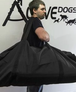 The large Bite Suit Bag is sturdy enough and large enough to store and carry a full sized bite suit and can even fit into a standard sized vehicle trunk. There’s even room enough to throw in a couple of bite sleeves if needed. The Bite Suit Bag is made of tough, 1000 denier nylon fabric. The handles are made of heavyweight poly web. The handles wrap all the way around the bag so they support the load of the bag contents securely.