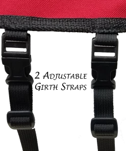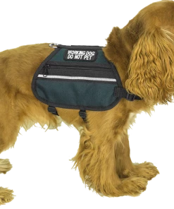 We have designed our Butterfly Dual Pocket Cape for those dogs who need to transport a few objects that do not require the larger backpack or saddlebag vest. The Butterfly Dual Pocket Cape is lightweight, simple and very functional. The pockets do not expand like the saddlebag or backpack vest; yet, they are wide enough to fit a checkbook size wallet, sunglasses, keys, pill bottles, identification papers, etc. in them. Since the vest has a wide pocket design, we have placed two girth straps on the Butterfly Dual Pocket Cape to keep it in place while the dog is moving. Both girth and chest straps are adjustable.
