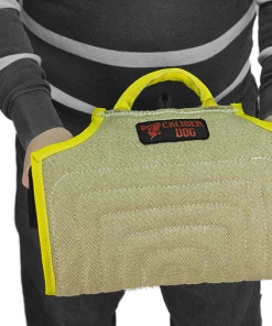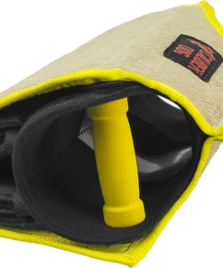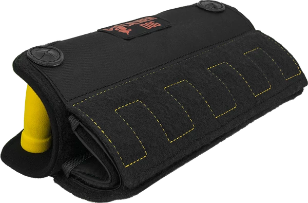 The CaliberDog Bite Developer is made by professionals for professionals. This sturdy sleeve will last for a long time when the sleeve cover is used. The sleeve is made from NK material which is specially made for bite sleeves. There is no more metal or hard plastic for increased safety for the canine. The sleeve bite bar can be adjusted in 3 ways. There are 2 inserts in the bite bar which can be removed to decrease the stiffness of the bar. This feature is ideal for training puppies or canines new to bite development. There is a padded handle inside the sleeve for comfort. The barrel of the sleeve is made from hard plastic to protect you from any missed bites. The hand stitching not only make the sleeve look great but it gives it outstanding durability.