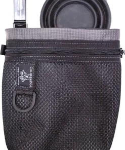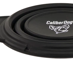 The CaliberDog Bait Bag includes the CaliberDog Tag Along Collapsible Dog Bowl. This dog bowl holds 8oz of water, but is only 1/2″ thick when fully collapsed.