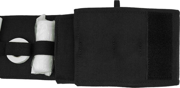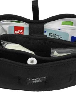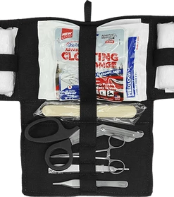 The MOLLE First Aid Field Trauma Kit is designed to be used with the K9 Tactical MOLLE Vest, The outer bag attaches to the vest with two webbed MOLLE sticks, included with the MOLLE First Aid Field Trauma Kit. This first aid kit address two emergency trauma issues of first aid; bleeding and bone breaks. In an emergency situation you can quickly see and access the medical supplies and instruments with this fold open trauma kit insert. The inner piece of this MOLLE K9 First Aid Field Trauma Kit comes out of the bag separately so you can have the supplies at your fingertips. The insert is padded so nothing sharp can poke through the bag insert. It is a trifold padded insert with elastic hold down straps for the supplies. This feature is a safety feature as time is an issue during an emergency and digging in the bag for your supplies takes time. The outer bag has a red embroidered medical cross on the front of it so it will quickly be recognized as the first aid supply bag. The MOLLE K9 First Aid Field Trauma Kit comes with exterior zip top bag, size 6x8x3, and trifold interior bag insert. Supplies included in the kit are Chrome Gut Sutures, Penlight, Tweezers, EMT Scissors, Scalpel, Forceps, Latex Gloves, Tourniquet, Wood Splints, Tape, 2×2 Gauze, 4×4 Gauze, Non-Adherent Pads, 4” Gauze Rolls, Antibacterial Wipes, Povidone Prep Pads, Instant Cold Pack, and Clotting Sponge. USA MADE