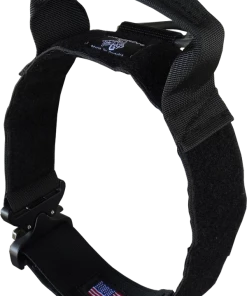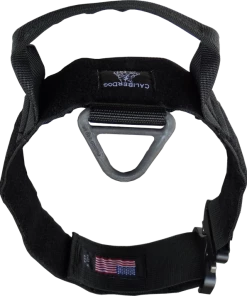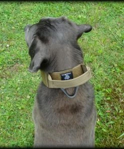 CaliberDog 2″ wide collar with handle and V-ring. The handle is very convenient for holding the dog back when needed. This CaliberDog ID collar with Handle is designed to carry any of our hook and loop ID panels or patches. This collar can be adjusted to fit a dog’s neck from 16″ to 26″ in circumference. It has load bearing berry compliant hardware, the 2″ Alpine Cobra Buckle and a V-ring. The CaliberDog ID Collar w/Cobra Buckle is made from 2″ wide military spec webbing. It comes in two colors, black or coyote. ID Panels and patches sold separately.