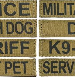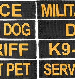 CaliberDog 1×5″ ID Panel with Black lettering on Coyote or Gold lettering on Black. Uses hook & loop to attach securely to items such as CaliberDog 1″ ID Collar (844101).