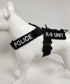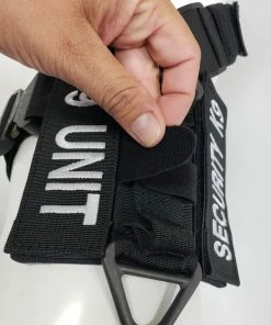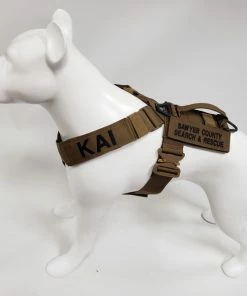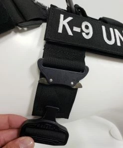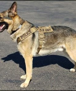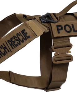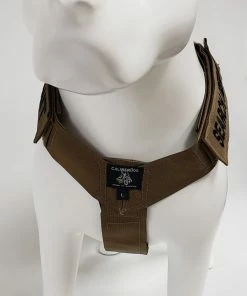 We have designed the CaliberDog K9 Tactical Harness with thought for those active working canines. This harness is made from strong military grade materials and yet light weight at the same time. There is a lot of flexibility for the dog when this harness is being worn. The CaliberDog K9 Tactical Harness makes the canine highly identifiable with places for 4 identification patch locations. (patches sold separately). Patches can be placed on the harness shoulder straps and or on the backplate of the harness. This harness has a handle that can be used standing up or flattened and hooked down on the harness. This is a nice feature to have the handle lay flat when the dog is doing search work. There is a 2” COBRA TM metal buckle on the girth strap. The buckle will not rub on the dog as it will be closed on the girth strap. All the straps of this harness, underbelly, shoulder and girth straps are all adjustable. The shoulder straps have an extra one-wrap loop to keep them secure. There are 2 cast metal V-rings on this harness. The front V-ring works well for use with the dogs leash and the back V-ring works well for tracking/trailing. They will not flop under the harness on the dog’s skin as they are attached on top of the harness backplate. You won’t worry about the backplate falling off as it is attached to the harness. The backplate gives the working canine a little padding on the dog’s backbone and Velcro space for additional patches. The CaliberDog K9 Tactical Harness is offered in two colors, black or coyote. Two girth sizes available: size M/L will fit 21” to 32” and size XL will fit 28” to 44” girth. Plain
