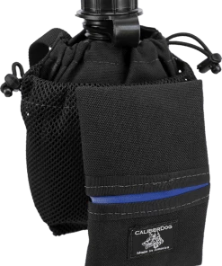 Now your working K9 can carry its own water supply and dish. The MOLLE Canteen Bag is made to be used with the K9 Tactical MOLLE Vest or by itself. If attaching to the vest it clips on easily with two webbed MOLLE sticks, included with the MOLLE Canteen Bag. The Canteen Bag comes with a plastic one quart screw top canteen bottle. The canteen securely fits into the bag with locking bungee draw cord and plastic side release buckle so it can easily be removed from its bag. The front of the bag has a mesh pocket that houses the foldable water dish. The water dish is double layer, waterproof material.
