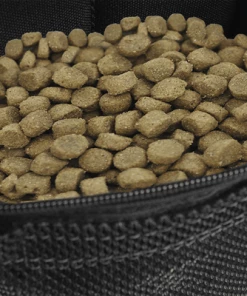The MOLLE Food Bag w/Dish is designed to be used with the K9 Tactical MOLLE Vest and attaches to the vest with two webbed MOLLE sticks, included with the MOLLE Food Bag. Three sides of the bag top zip open for easy access to the food. The bag has a mesh front pocket that holds the lined foldable food dish, included with the food bag. The MOLLE Food Bag holds approximately six cups of dog food. It can also accommodate a quart plastic bag. USA MADE