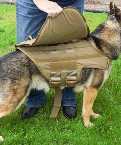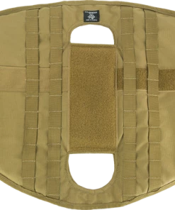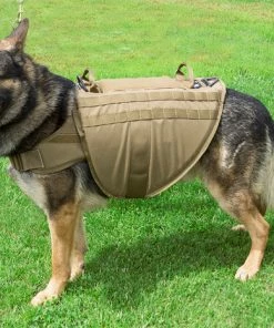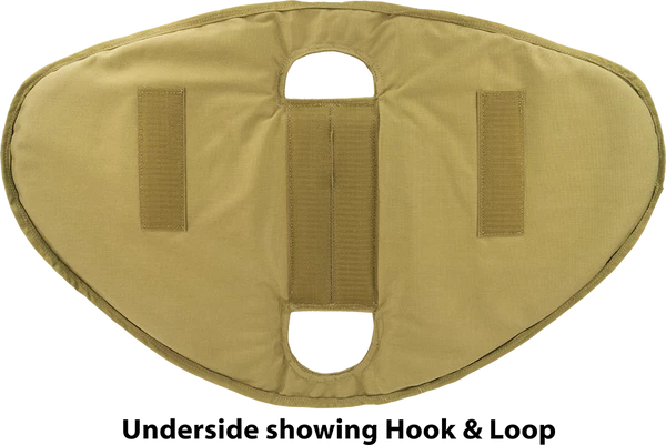This Stab and Bullet Panel is designed to fit over the CaliberDog K9 Tactical MOLLE Vest. It is Level III gunfire protection and stab protection. When used with the Tactical MOLLE Vest the vest back handles and V-rings of the tactical vest fit through this cover so they can be accessed by the dog’s handler. There are two sets of MOLLE straps and the wide Velcro on top so you can still use the camera mount with this Caliber Dog Stab & Bullet Vest Cover. This product is a lighter weight solution to a bullet K9 vest and can be quickly detached from the vest. Bullet vests for working K9s are generally hot and heavy for the dog to work in. The convenient part of this stab and bullet vest cover is that it so easily and quickly attaches and detaches off of the Caliber Dog K9 Tactical MOLLE Vest. With the CaliberDog stab & bullet cover, the K9 is primarily protected on its side and back. Comes in two colors: black or coyote. USA MADE