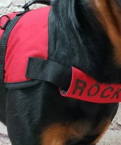 Our Chest Strap Identification Covers are a great way to show a custom message with your working dog. Choose your own text, up to 20 characters. Choose from 2 different lengths & 13 different colors! The Custom Chest Strap Identification Covers are padded and lined to give your dog comfort. Covers open and close with hook & loop so they are very easy to put on and take off. These strap covers fit a wide variety of vests. MADE IN THE USA