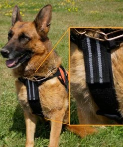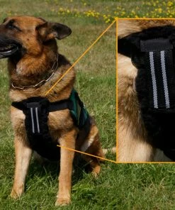Chest to Girth Support Strap is a support strap that can be added to our vests or harnesses. It is easy to put on and take off with the hook & loop type closure. The front part of the Chest to Girth Support Strap covers the dog’s breast bone and has safety reflective materials on the front of it. This support strap works especially well with vests that have packs on them because it keep the vest and packs in the upright position. This Chest to Girth Support Strap goes down the chest through the front legs under the belly of the dog and attaches around the girth strap of your vest or harness. This support strap will help support the dog’s underbelly making the vest/harness a more secure harness for pulling or carrying packs while the dog is working. This Chest to Girth Support Strap also works well for those dogs that want to roll and rub off their vest/harness. You can choose this Chest to Girth Support Strap made from Neoprene or Sherpa. Made in USA