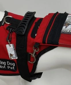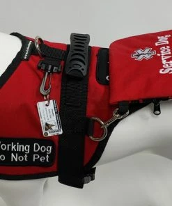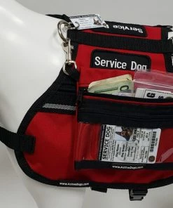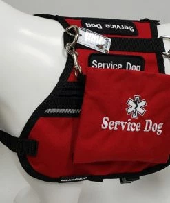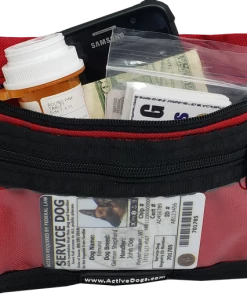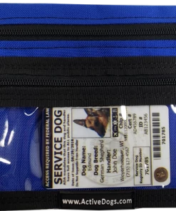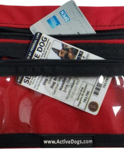 Our newly redesigned Clip-On Service Dog ID Pocket Bag is made with 1000 denier coated fabric to make it durable and easy to clean. One side of the bag has a zippered pocket with a clear vinyl window for identification cards or medical paperwork. The other side is embroidered with large text: Service Dog and a medical cross. At the top, there is a zipper with a pull tab and 2 snaps for attaching the Pocket Bag to your dog’s vest, your clothing, or gear bag.