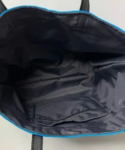Very attractive color blocked large agility tote bag. Constructed inside and out with high thread count fabrics. This is not your average cheap tote bag. It is fully lined with two deep interior pockets. Outside are four more pockets at the lower bottom section of the bag front and a tri-ring to attach keys. I love the function of this large quality tote bag.