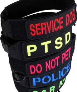 This collar comes with two 2″ x 6″ patches. They are interchangeable and attach to the collar using hook & loop. Pick from standard text or enter your own text. All letters will be embroidered in upper case. Choose from 29 colors for each patch. Patches are embroidered using strong polyester thread for long lasting quality. Embroidered in our embroidery department. Made in USA