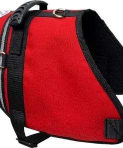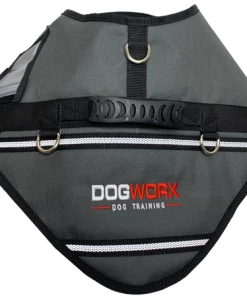 On top of the vest, there is a heavy welded D-ring for attaching your leash/lead. The girth strap is adjustable and allows your dog the mobility that it needs to work, run, and jump. The chest strap has a two-way adjustment.