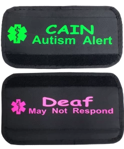 The ActiveDogs custom text medical alert seat belt cover serves multiple purposes. It address and identifies traveling with your service dog, medical condition, or gives you a large area to display any other type of message you desire. Having this on you belt can be helpful for emergency personnel in the event of an accident or emergency.