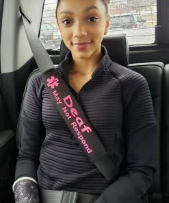 This seat belt cover is professionally printed in bold letters that are highly visible. The back of the cover is made from padded foam material so it will be a comfortable cushion pad against the person wearing the seat belt. It opens the full length and attaches around the seat belt with Velcro.