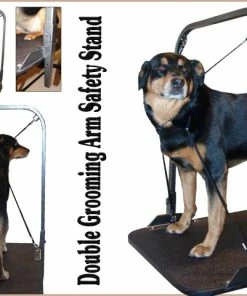 For super difficult dogs purchase two stands, one for the front of the dog and the other for the back of the dog. If you have larger or older dogs that want to lay down or sit while grooming then the Double Arm Safety Stand can be mounted at the back portion of your grooming table. Loop restraints sold separately. Made in the U.S.A. by Activedogs.com
