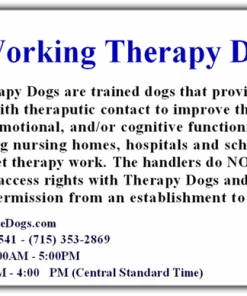 Each card contains access and contact information. They are color printed on both sides using heavy card stock paper. They are not laminated. These cards are perfect for helping others understand your rights as a handler of a therapy dog. Cards come in a zip-lock, reusable bag.
