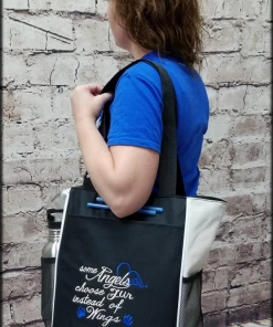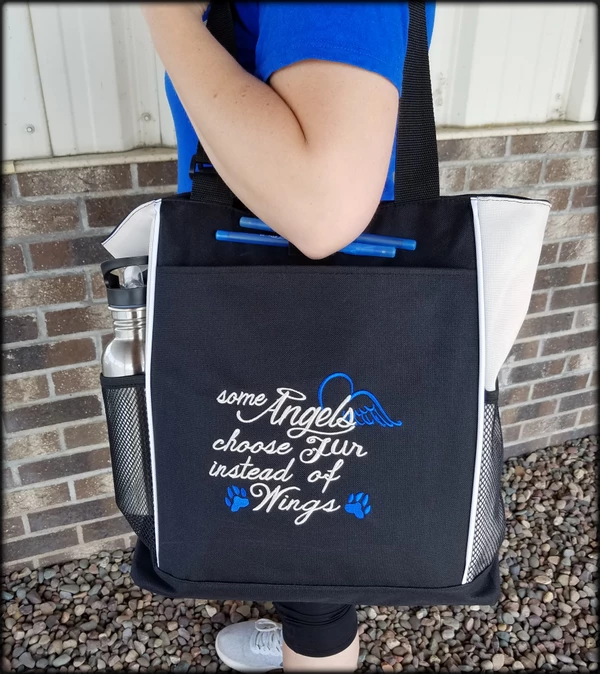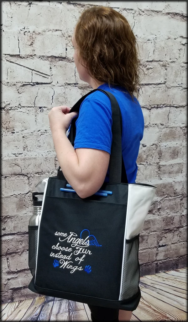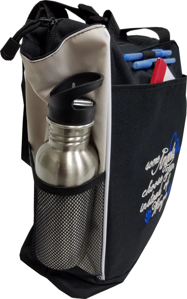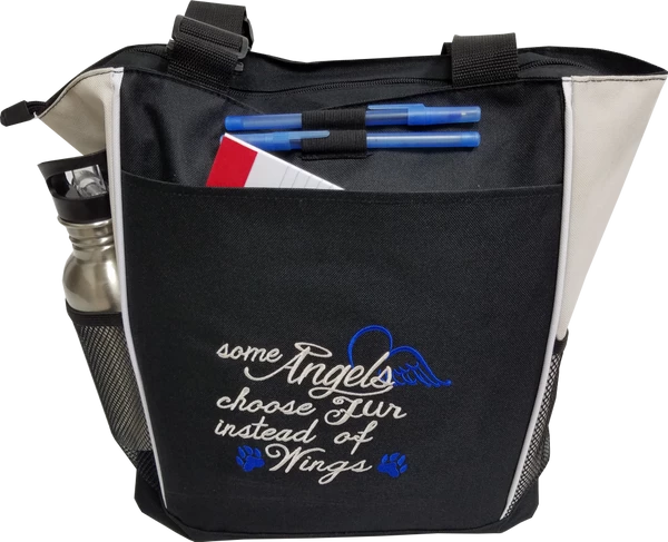 Our Dog Love Specialty Totes are stylish and functional. We offer them with 15 different large colorful graphics, and each one has a custom accent color option. With this variety to choose from there is a graphic to fit everyone’s taste. This tote comes with adjustable handles, 2 mesh side pockets, front flat pocket, elastic pen holders & zippered top.