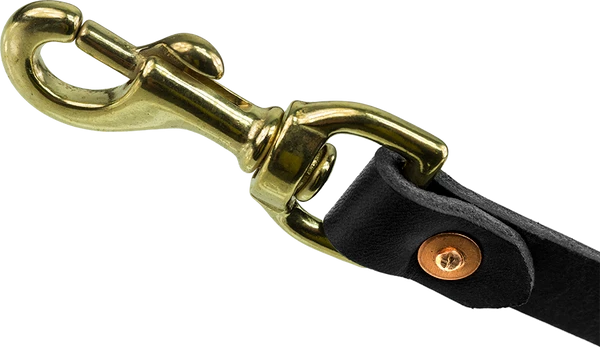 The 3/4″ wide Double Handle Leash is made of quality latigo leather, using copper rivets and solid brass hardware for durability. The two handles allow a trainer maximum control over his/her canine.