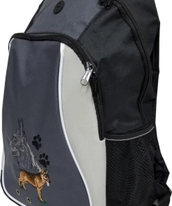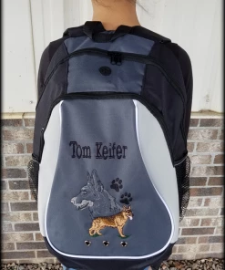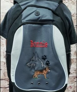 Each embroidered portrait features a full body, set of paws and a large multi colored head design. We offer this backpack with personalization up to 20 characters at no additional charge. Embroidered at Activedogs.com