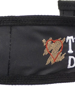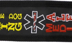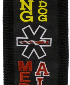 The Embroidered Identification Strap Covers give you high visibility with getting your message out to those you meet. We have embroidered a colorful very high stitch count identification message on a dark background colored fabric. The message pops with color and won’t be easily missed. The dark background is a UV fade resistant fabric and will give you many years of service. Both sides of the strap cover are embroidered with the same message so if your leash is twisted you will still be able to send your message to the public. Each end of the strap cover has a hook & loop closure. To use, open the hook and loop ends, slip your leash/strap through the cover and press the ends closed. This Identification Strap Cover will fit on a leash, collar, or any open ended strap. You can choose from four designs of this Identification Strap Cover.