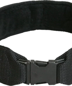 This dog collar has all metal hardware. The black, contoured side release metal buckle is sized smaller than the 2” collar. There is a welded, black metal D-ring attached to the top of the collar for easy leash attachment.