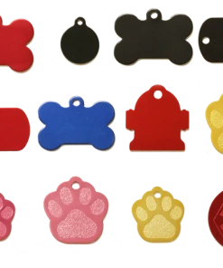 The Engraved Aluminum Collar Tag is engraved on both sides. The tag comes in several color and style choices. The corners of the tag are rounded, so they will not poke the dog’s neck when it is lying down.