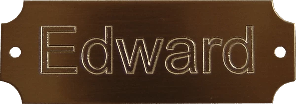 Engraved Brass name plates are a nice compliment to a beautiful leather collar or leash. These brass plates are not just square name plates but have either scalloped or bullet rounded corners. If the name plate is purchased with a collar from us then we will mount it for you. Unless otherwise specified we will mount the name plate in the middle of the collar. Upon checkout type in the comment box what you would like on the name plate.