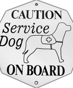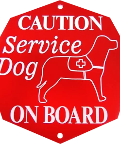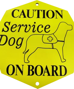 Inform people you have a service dog! The Engraved Hanging Vehicle Sign is made from colored acrylic with recessed lettering and design. Includes two suction cups for hooking on either side of the sign. High-quality laser engraving done by activedogs.com in the USA.