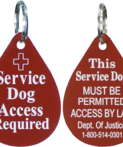 The Engraved Service Dog Access Tag is made with an hard acrylic material that will withstand any weather element. Engraved on each side. Made in USA.