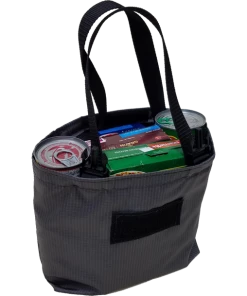 This is a replacement bag for the Service Dog Grocery Getter Harness. The bag has expanding sides when holding groceries. There are tuck away handles to carry the bag and hook & loop closing interior flaps on the inside of the bag. This bag fits secure on the harness by two side release buckles and hook & loop.