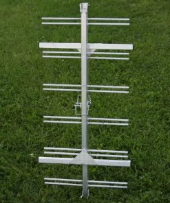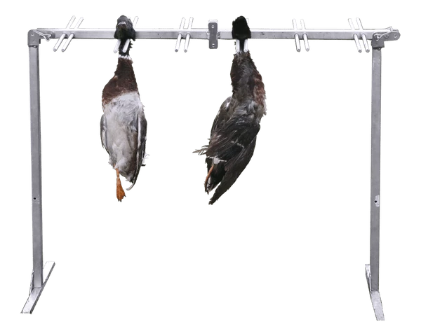 This folding “no rust” aluminum duck rack holds 36 throwing birds. The 18″ wide stance is less tippy then triangular units. It is constructed of 1″ square aluminum tubing. It folds down to 3″ x 39″ x 18″ for easy carry.