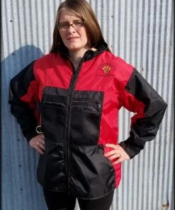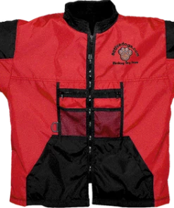 The Handler Jacket is made of durable, wind and water resistant, exterior nylon fabric. The jacket features a soft fleece lining in the interior, a full length, and a D-ring for your dog’s leash. There are six front pockets which includes two zippered pockets, two netted pockets, and two tug pockets. There is also a two-part large pocket in the back for tugs. Quality made with double seams and top stitched. USA MADE