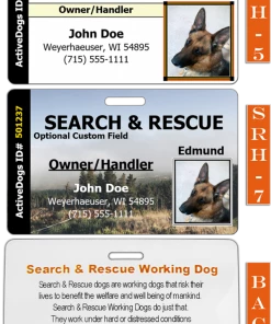 On the back of the Therapy Dog or Search & Rescue ID’s, we put a statement about the work that these dogs perform.