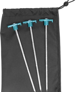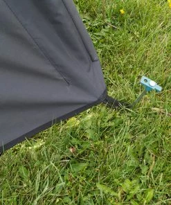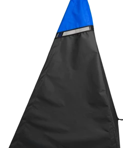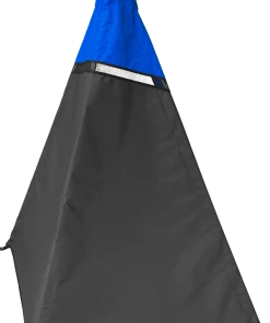 The bottom of the tent and all edges are reinforced and bound. The top of the poles are held together with our locking pin system that easily snaps open should you want to take apart the blind. Our unique blind design features the 4 layer reinforced hood that is on all of our blinds. This blind will never slip down the poles as the reinforced hood holds them in place. This blind is different in the fact that the peep window area extends the full width of the blind. The blind is a beautiful royal blue color on the top section and solid black on the bottom portion of the blind. The blind has a removable spike hold down system. The three spikes come with the blind and have a pouch for storage when the blind is not in use. There are no nasty short spikes welded onto the poles to tear up the inside of your vehicle. The poles also have rubber end caps at the bottom of the poles for working indoors during those winter months or rainy days. This is a nice feature because the blind will stand secure on a hard surface. There is an attached Hook and Loop strap on the side of the blind for holding the blind together in storage.