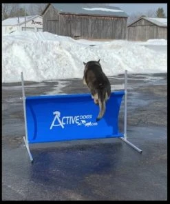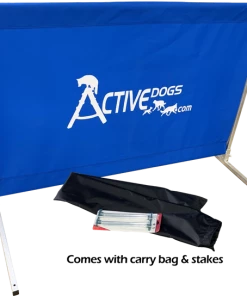 Our lightweight Standard Hurdle Jump is very affordable and has some great features. We designed this with a sturdy all aluminum welded frame; aluminum does not attract heat and will never rust. Even our standard hurdle gives you the option of full adjustment, which means you can start at 6″ and move in any increment you want all the way to full height. This is a great feature for training a new dog. You can easily adjust the height by simply loosening the thumb knobs and evenly sliding the top rail to the desired height. No bolts or tools necessary for assembly or use of this hurdle jump. The body of the hurdle is made from outdoor marine grade fabric that will not disintegrate or rot. The hurdle also comes with a drawstring carry bag and 4 stakes.