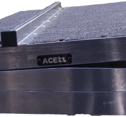 With the unique laser cut hinge system this scaling wall easily folds for convenient storage and transport. The frame is constructed of non-rust aluminum. The toe grips have a non slip surface on them. The top deck is sturdy no maintenance aluminum that is then carpeted and riveted for extra durability. We have designed this wall to be durable yet light weight. No tools required for set up just simply open up the two halves and place the lock pins in position.