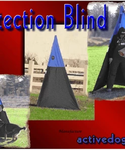 There is not another blind on the market that can come close in comparison to this product. This blind is handcrafted with every detail that makes it the best. It is made of marine grade materials for lasting outdoor use. We have had one of these blinds on our training field since 2002 and it is still in working condition. The Activedogs.com telescoping blind is done in beautiful two tone colors of blue and black. The pole system is telescoping anodized light weight aluminum poles. No more dirty pipe junk coming off on your hands and clothes. The poles are 8’ in length so even that tall helper can hide behind. The poles telescope down to 4’ in length for perfect storage. The top of the poles are held together with a locking pin system that easily snaps open for drop down storage. They are protected by a 4 layer reinforced hood. This blind will never slip down the poles as the reinforced hood holds them in place. There are two small peep windows that are web reinforced and double netted to keep the helper hidden when watching for that incoming dog. The blind has a spike hold down system. The spikes come with the blind. The bottom of the tent is web reinforced all along the edge. There are no nasty short spikes welded onto the poles to tear up the inside of your vehicle. The poles also have rubber end caps for working indoors during those winter months so it stands secure alone.