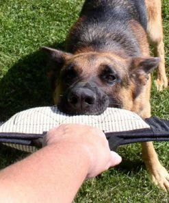 The jute bite pillow works great for training while also working your dog on target biting. This pillow is a nice step up from the round tug toy style making it easier to work with hard biting dogs. Our jute bite pillow is made with strength, durability, and longevity in mind, while using the highest quality products. This bite pillow is quilted double layer jute and felt padded with three tubular handles for a strong and easy grip.Â