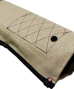 The Jute Puppy Sleeve is made with a double layer of jute. It is padded for safety and has a quilted lining for comfort. The interior has a formed handle so you can easily pull your arm into the sleeve. At the top is a loop for hanging the sleeve. I have used this to drag the sleeve in front of the pup to excite the puppy to chase and bite the sleeve. It helps motivate and train the puppy. This sleeve will help transition the young dog into a regular harder bite sleeve. The puppy sleeve is a beginning softer sleeve experience for the young dog. It will promote the pup to bit as it has a spongy soft bite. Can be worn on the helpers right or left arm. Made in USA.
