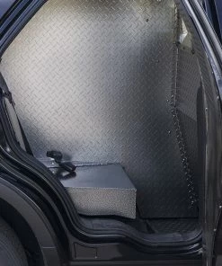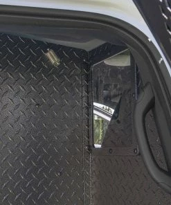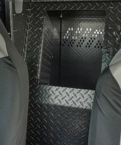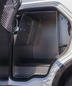 12″ x 15″ opening with door provides easy access to K9 from the front seat to be able to calm the canine. This vehicle specific design is very easy to install and bolts securely to vehicle floor with simple hand tools. Designed to maximize use of front seats. Manufactured from heavy-duty aluminum for maximum durability. Beautiful & long lasting black/silver vein powder coat finish. Works great with our 3 Drawer Locking Storage Cabinet. Approximate kennel inside dimensions: 34″ (front) / 26″ (back) W x 42″ L x 28″ H Door and window guards are included free of charge when you purchase a Police K-9/Passenger Vehicle Insert. These guards are cut from a single piece of 18 gauge steel and have no seams or welds. CNC machining is used for an exact fit on your vehicle. Durable black fleck two step powder coat finish. Includes self-drilling screws for easy installation with pre-drilled mounting holes. Made and designed by Activedogs.com in the USA.